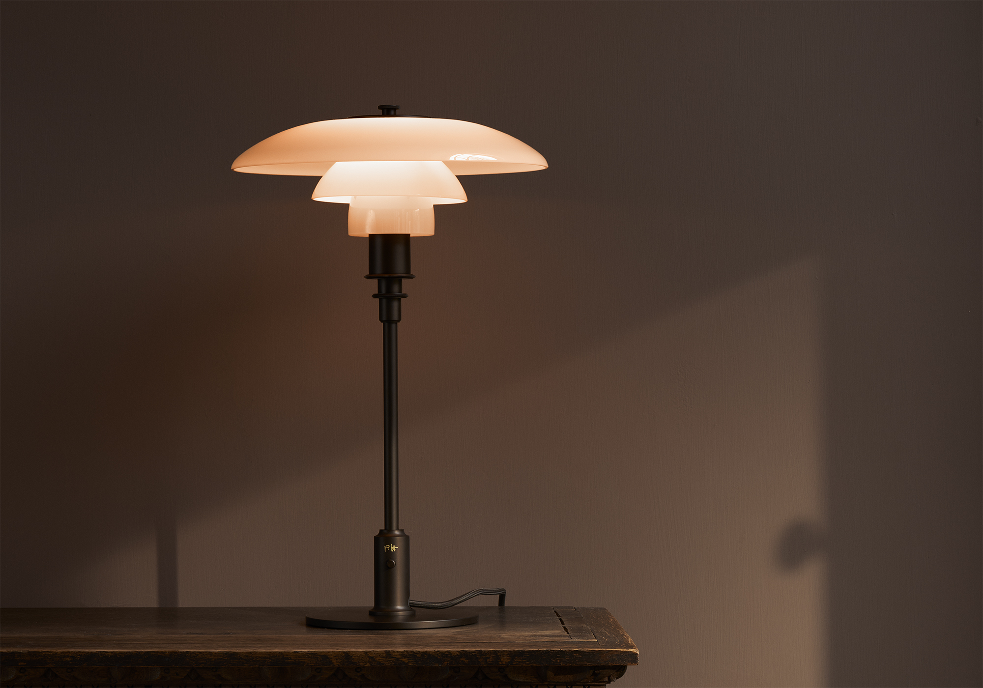 「PH 3/2 Table」は約47cmの高さで、サイドボード、サイドテーブルなどの上で灯具としてもオブジェとしても、空間のワンポイントとしてご使用いただけるアイテムです。また、3枚のガラスシェードは眩しさを取り除き、光をテーブル面と上方の空間に広げるという機能にもとづいたタイムレス・デザインであるため、どのようなスタイルの空間にも調和します。