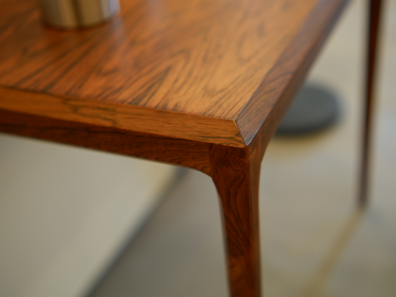 丁寧に面取りされた天板や脚部、すらりと伸びるラインは、まるで彫刻のような美しさです。